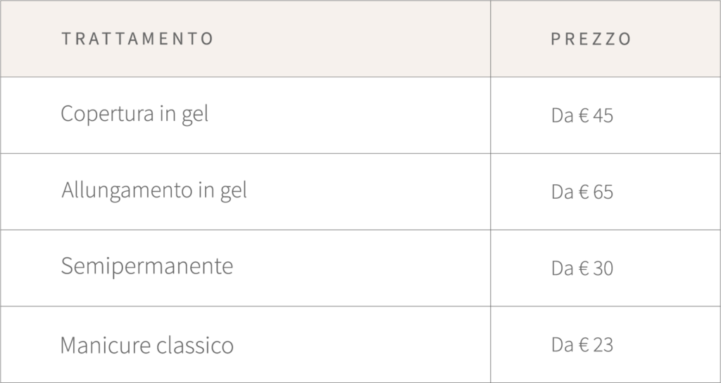 Far vivere ai clienti un’esperienza rilassante e piacevole è il nostro obiettivo, ovviamente rispettando i più alti standard di igiene e pulizia. Il tuo salone di bellezza di riferimento è pronto a coccolarti e a curarti, scopri i nostri servizi di depilazione, manicure, semipermanente, ricostruzione unghie in gel, trucco per eventi, massaggi interessanti e molto altro qui sotto.